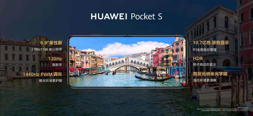 يحتوي جهاز Huawei Pocket S على لوح جرافيت رفيع للغاية قابل للانحناء لتحسين قدرات التبريد. هناك بطارية 4000 مللي أمبير مع شحن سريع 40 واط. ووعدت الشركة بأنه تم اختبار آلية المفصلة وفتحها وغلقها 400 ألف مرة لضمان متانتها.