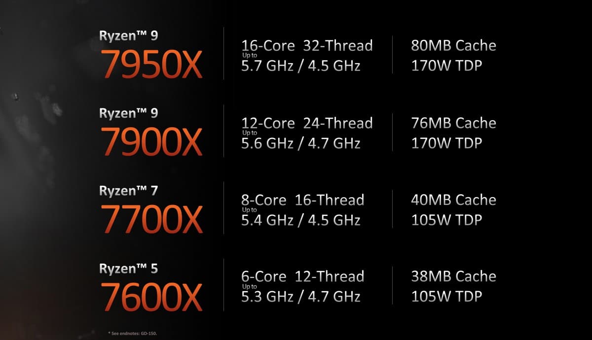 وحدات المعالجة المركزية الأربعة التي تم الإعلان عنها هي 7950X و 7900X و 7700X و 7600X.