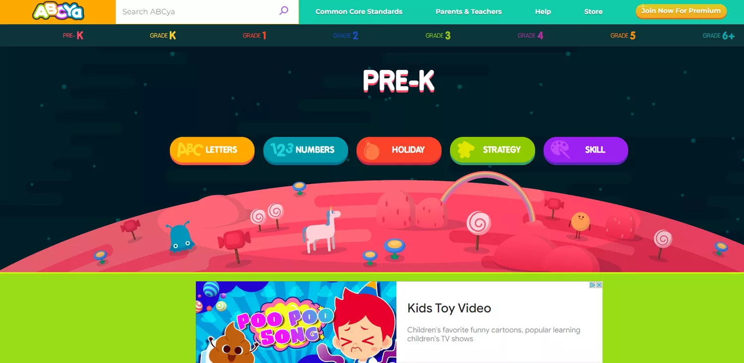 يقدم ABCya! ألعاب حول الاستراتيجية والمهارات والأرقام والحروف وألعابًا ذات طابع احتفالي لعيد الميلاد وعيد الفصح وعيد الحب وغيرها. ستجد ألعابًا لمرحلة ما قبل المدرسة مثل لعبة البنغو، وتتبع الحروف، وتوصيل النقاط، ومطابقة الحروف، وإكمال الأنماط.