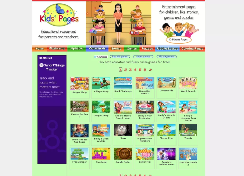 موقع Kids’ Pages هو موقع لمرحلة ما قبل المدرسة يحتوي على ألعاب مجانية ولكن أيضًا بطاقات تعليمية وقصص وصفحات تلوين وألغاز ونكات والمزيد. هناك أكثر من 100 لعبة مجانية لمرحلة ما قبل المدرسة هنا.