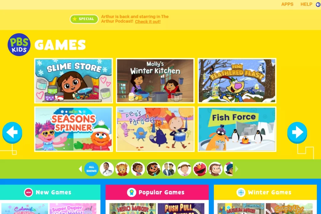تقدم PBS Kids ألعابًا مجانية للأطفال في مرحلة ما قبل المدرسة تتضمن شخصيات PBS Kids. ستجد هنا ألعاب Sesame Street و Arthur و Curious George و Super Why و Bob the Builder والمزيد من الألعاب.