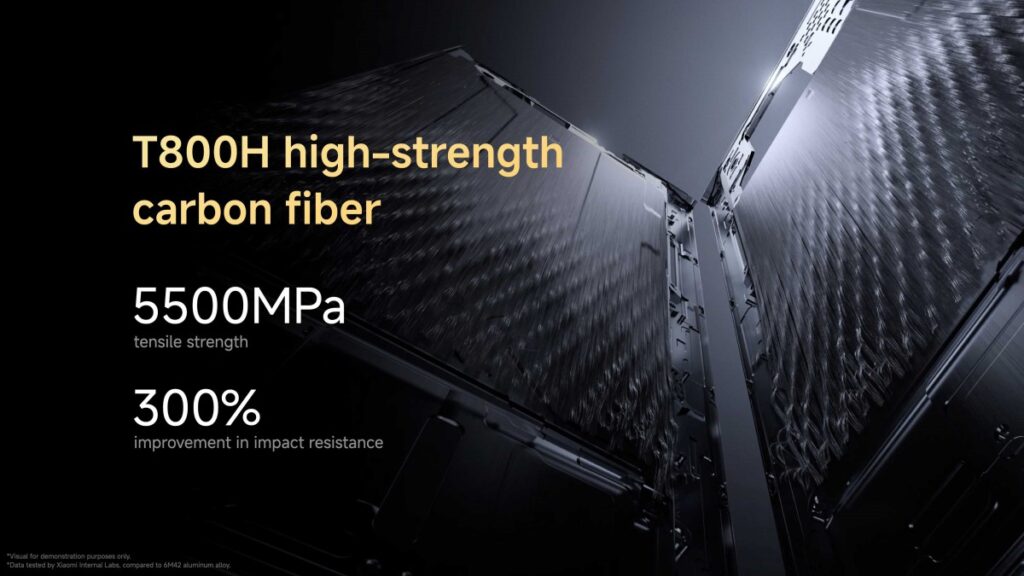 يتميز الهيكل الداخلي لجهاز ميكس فولد 4 بألياف الكربون T800H عالية القوة والتي تعد خفيفة الوزن بشكل ملحوظ مع توفير تحسن بنسبة 300% في مقاومة الصدمات مقارنةً بجهاز ميكس فولد 3. يجعل ذلك وزن الجهاز 226 جرامًا فقط، نفس وزن ماجيك V3 من هونور وأخف من سامسونج جالاكسي Z Fold 6. كذلك يأتي بسمك 4.59 مم عند فتحه و9.47 مم عند طيه. اختارت شاومي تصميم إطار منحني من الألومنيوم. وهذا أيضًا هو أول هاتف قابل للطي من شاومي يحصل على تصنيف IPX8، مما يجعله مقاومًا للماء حتى عمق 1.5 متر لمدة 30 دقيقة.