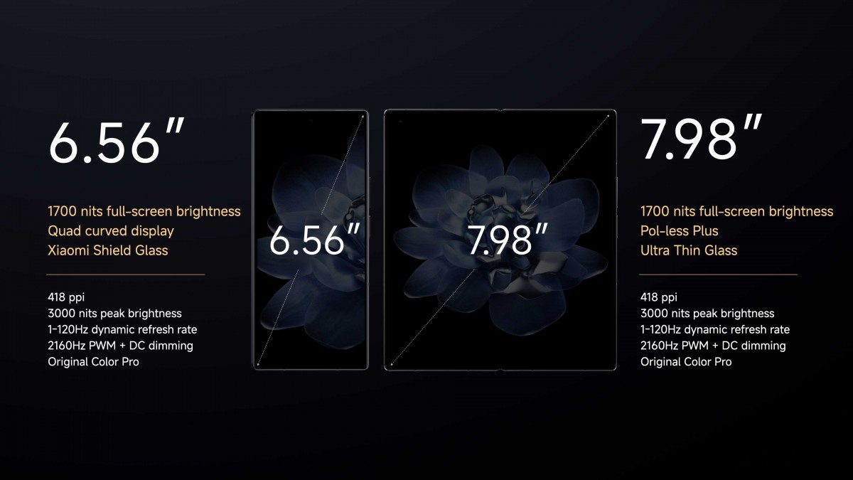 يأتي الهاتف بشاشة خارجية OLED من نوع LTPO مقاس 6.56 بوصة بدقة +FHD، ومعدل تحديث متكيف يبلغ 1-120 هرتز، ونسبة عرض إلى ارتفاع تبلغ 21:9. أما الشاشة الرئيسية فتأتي بمقاس 7.98 بوصة مصنوعة من زجاج Ultra Thin Glass (UTG) وتتميز أيضًا بدقة +FHD ومعدل تحديث متكيف 1-120 هرتز. تدعي شاومي أن كلتا الشاشتين يمكنهما إنتاج سطوع يصل إلى 3000 شمعة في المتر المربع وكل منهما يأتي مع كاميرا أمامية بدقة 20 ميجابكسل.