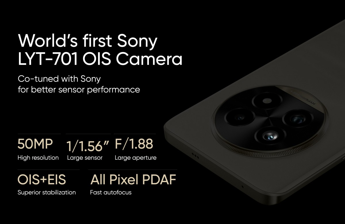على مستوى الكاميرات، يعد ريلمي 13 برو بلس أول هاتف يتم إطلاقه بمستشعر سوني LYT-701 في الكاميرا الرئيسية بدقة 50 ميجابكسل (24 مم). وهناك أيضًا أول عدسة مقربة 3x تتميز بمستشعر سوني LYT-600 (1/2 بوصة) بدقة 50 ميجابكسل وطول بؤري 73 مم. تتميز كلتا الكاميرتين الخلفيتين بميزة المثبت البصري OIS، وينضم إليهما كاميرا فائقة الاتساع بدقة 8 ميجابكسل (16 مم).