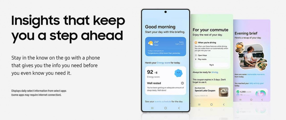جميع طرازات سلسلة S25 تأتي بواجهة One UI 7 المستندة إلى نظام أندرويد 15. هذه الواجهة تقدم مجموعة كبيرة من ميزات الذكاء الاصطناعي، مثل:
